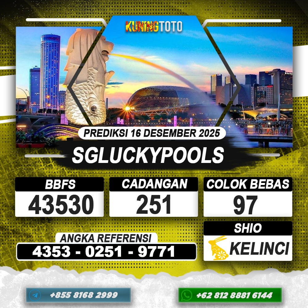 PREDIKSI TOGEL SGLUCKYPOOLS 16 DESEMBER 2025 – Selamat Datang di Situs Prediksi Togel Online Akurat dan Resmi KUNINGTOTO. Permainan Togel atau Toto Gelap ini telah lama menarik perhatian dan banyak dimainkan oleh para bettor. Sejak dulu permainan togel dimainkan dengan memasang taruhan angka dengan bandar darat yang tersedia di daerah masing – masing. Namun sekarang ini dengan perkembangan teknologi yang semakin maju, para bettor bisa menikmati permainan togel secara online. Anda bisa menemukan banyak6ya Situs Bandar Togel Online yang menyediakan layanan pemaangan angka togel secara praktis. Dimana masing – masing situs bandar togel online resmi dan terpercaya tentu menyediakan layanan dan keuntungan yang berbeda – beda untuk Anda.