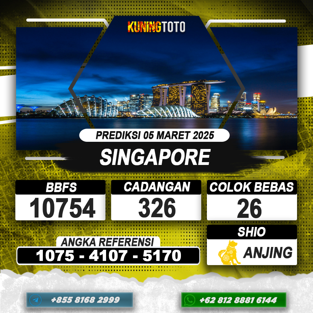PREDIKSI TOGEL SINGAPORE 05 MEI 2025 – Selamat Datang di Situs Prediksi Togel Online Akurat dan Resmi KUNINGTOTO. Permainan Togel atau Toto Gelap ini telah lama menarik perhatian dan banyak dimainkan oleh para bettor. Sejak dulu permainan togel dimainkan dengan memasang taruhan angka dengan bandar darat yang tersedia di daerah masing – masing. Namun sekarang ini dengan perkembangan teknologi yang semakin maju, para bettor bisa menikmati permainan togel secara online. Anda bisa menemukan banyak6ya Situs Bandar Togel Online yang menyediakan layanan pemaangan angka togel secara praktis. Dimana masing – masing situs bandar togel online resmi dan terpercaya tentu menyediakan layanan dan keuntungan yang berbeda – beda untuk Anda.