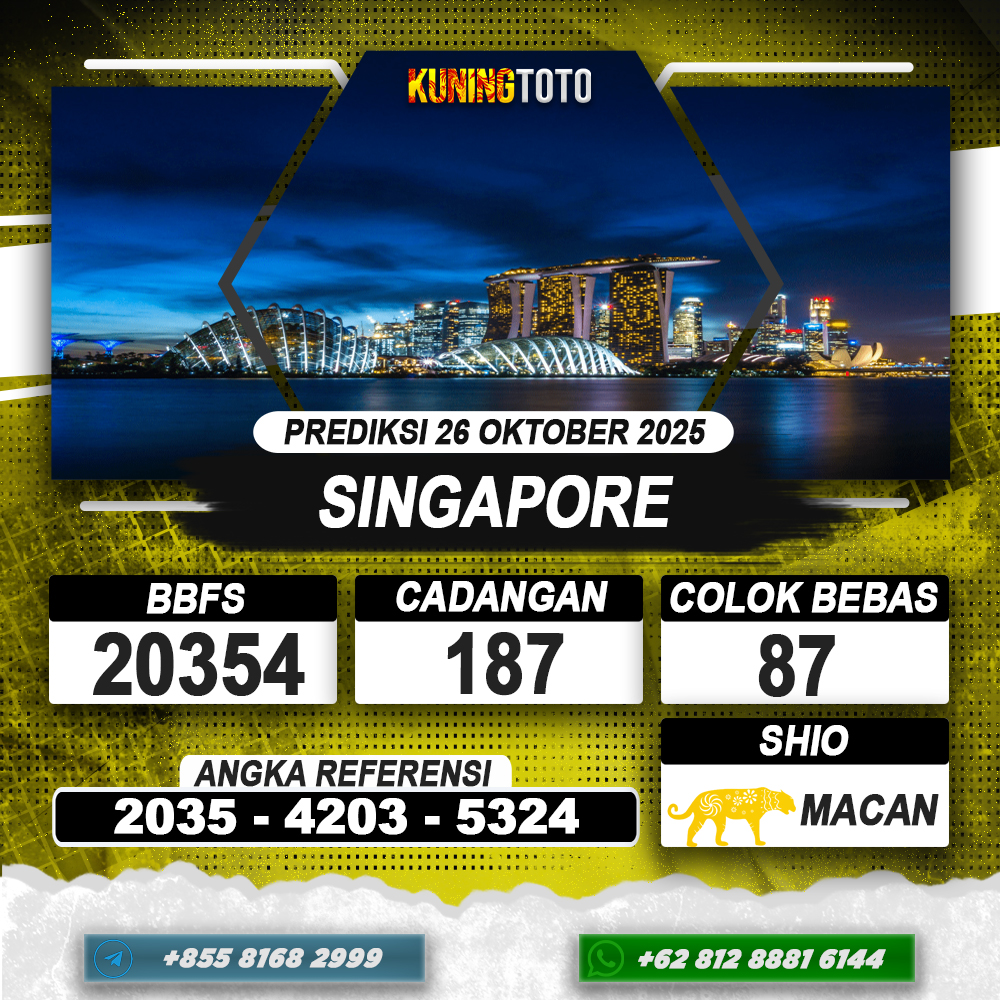 PREDIKSI TOGEL SINGAPORE 12 FEB 2025 – Selamat Datang di Situs Prediksi Togel Online Akurat dan Resmi KUNINGTOTO. Permainan Togel atau Toto Gelap ini telah lama menarik perhatian dan banyak dimainkan oleh para bettor. Sejak dulu permainan togel dimainkan dengan memasang taruhan angka dengan bandar darat yang tersedia di daerah masing – masing. Namun sekarang ini dengan perkembangan teknologi yang semakin maju, para bettor bisa menikmati permainan togel secara online. Anda bisa menemukan banyak6ya Situs Bandar Togel Online yang menyediakan layanan pemaangan angka togel secara praktis. Dimana masing – masing situs bandar togel online resmi dan terpercaya tentu menyediakan layanan dan keuntungan yang berbeda – beda untuk Anda.