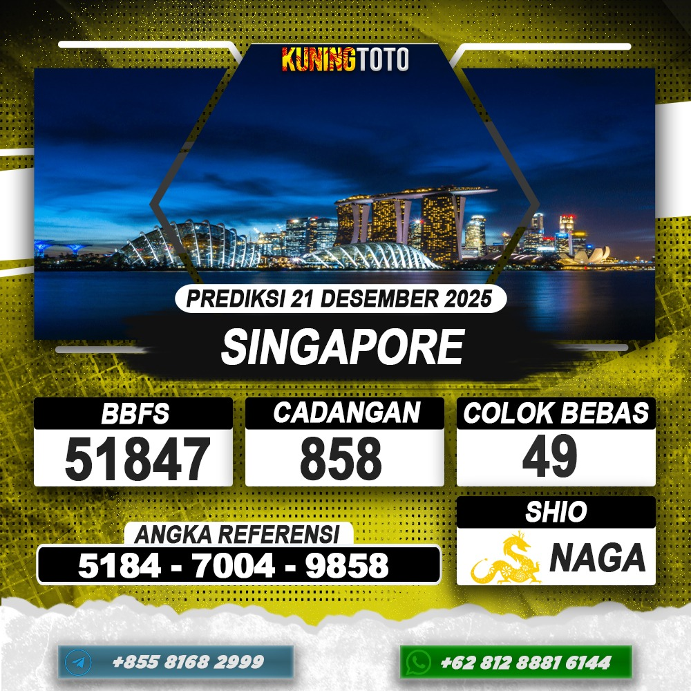 PREDIKSI TOGEL SINGAPORE 21 DESEMBER 2025 – Selamat Datang di Situs Prediksi Togel Online Akurat dan Resmi KUNINGTOTO. Permainan Togel atau Toto Gelap ini telah lama menarik perhatian dan banyak dimainkan oleh para bettor. Sejak dulu permainan togel dimainkan dengan memasang taruhan angka dengan bandar darat yang tersedia di daerah masing – masing. Namun sekarang ini dengan perkembangan teknologi yang semakin maju, para bettor bisa menikmati permainan togel secara online. Anda bisa menemukan banyak6ya Situs Bandar Togel Online yang menyediakan layanan pemaangan angka togel secara praktis. Dimana masing – masing situs bandar togel online resmi dan terpercaya tentu menyediakan layanan dan keuntungan yang berbeda – beda untuk Anda.