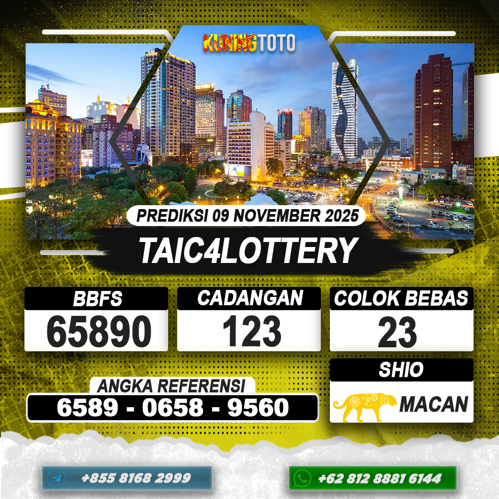PREDIKSI TOGEL TAIC4LOTTERY 09 NOVEMBER 2025 – Selamat Datang di Situs Prediksi Togel Online Akurat dan Resmi KUNINGTOTO. Permainan Togel atau Toto Gelap ini telah lama menarik perhatian dan banyak dimainkan oleh para bettor. Sejak dulu permainan togel dimainkan dengan memasang taruhan angka dengan bandar darat yang tersedia di daerah masing – masing. Namun sekarang ini dengan perkembangan teknologi yang semakin maju, para bettor bisa menikmati permainan togel secara online. Anda bisa menemukan banyak6ya Situs Bandar Togel Online yang menyediakan layanan pemaangan angka togel secara praktis. Dimana masing – masing situs bandar togel online resmi dan terpercaya tentu menyediakan layanan dan keuntungan yang berbeda – beda untuk Anda.