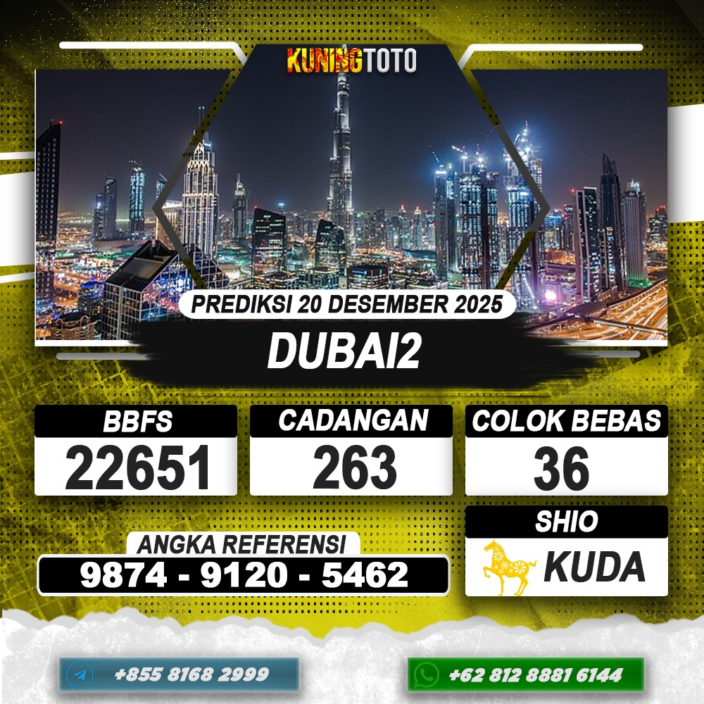 PREDIKSI TOGEL DUBAI2 20 JULI 2023 – Selamat Datang di Situs Prediksi Togel Online Akurat dan Resmi KUNINGTOTO. Permainan Togel atau Toto Gelap ini telah lama menarik perhatian dan banyak dimainkan oleh para bettor. Sejak dulu permainan togel dimainkan dengan memasang taruhan angka dengan bandar darat yang tersedia di daerah masing – masing. Namun sekarang ini dengan perkembangan teknologi yang semakin maju, para bettor bisa menikmati permainan togel secara online. Anda bisa menemukan banyaknya Situs Bandar Togel Online yang menyediakan layanan pemasangan angka togel secara praktis. Dimana masing – masing situs bandar togel online resmi dan terpercaya tentu menyediakan layanan dan keuntungan yang berbeda – beda untuk Anda.
