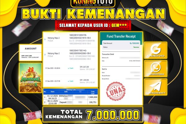 Bukti JackPot Slot Member KUNINGTOTO 01 Desember Slot Mahjong Ways 2 Memenangkan Jackpot Permainan Slot online sangat populer di kalangan…