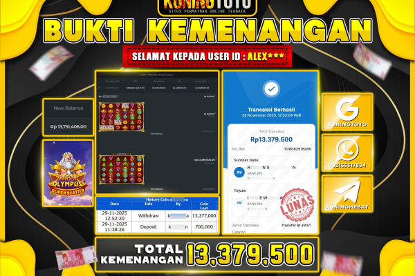 Bukti JackPot Slot Member KUNINGTOTO 29 November 2025 Slot Gates Of Olympus Super Scatter Memenangkan Jackpot Permainan Slot online sangat…