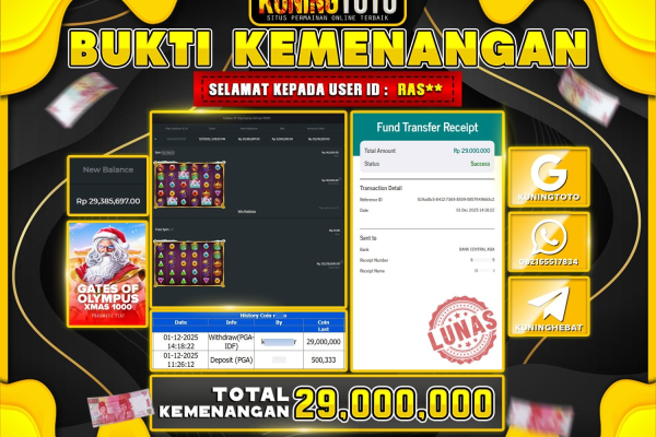 Bukti JackPot Slot Member KUNINGTOTO 01 Desember Slot Gates Of Olympus Xmas 1000 Memenangkan Jackpot Permainan Slot online sangat populer…