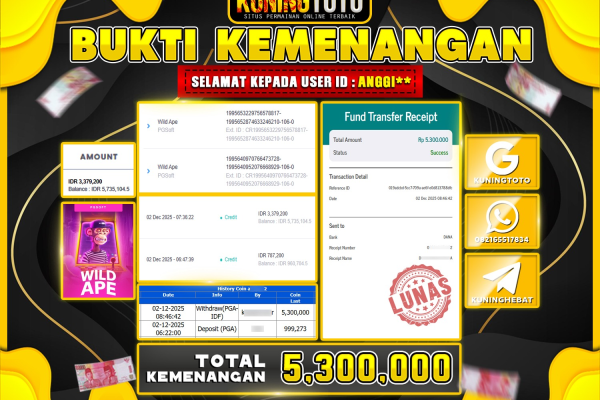 Bukti JackPot Slot Member KUNINGTOTO 02 Desember Slot Wild Ape Memenangkan Jackpot Permainan Slot online sangat populer di kalangan pemain…