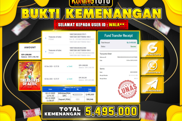 Bukti JackPot Slot Member KUNINGTOTO 02 Desember Slot Treasures of Aztec Memenangkan Jackpot Permainan Slot online sangat populer di kalangan…