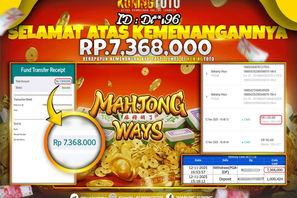 Bukti JackPot Slot Member KUNINGTOTO 12 November 2025 Slot Mahjong Ways Memenangkan Jackpot Permainan Slot online sangat populer di kalangan…