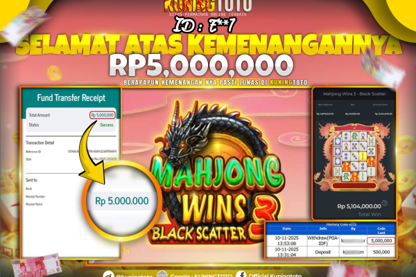 Bukti JackPot Slot Member KUNINGTOTO 10 November 2025 Slot Mahjong Wins 3 – Black Scatter Memenangkan Jackpot Permainan Slot online…