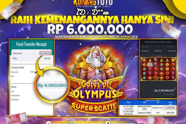 Bukti JackPot Slot Member KUNINGTOTO 21 Juli 2025 Slot Gates of Olympus Super Scatter Memenangkan Jackpot Permainan Slot online sangat…