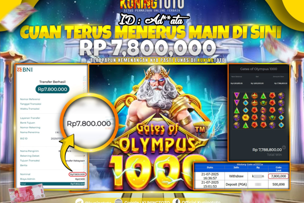 Bukti JackPot Slot Member KUNINGTOTO 21 Juli 2025 Slot Gates of Olympus 1000 Memenangkan Jackpot Permainan Slot online sangat populer…