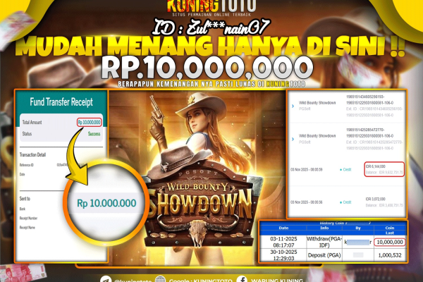 Bukti JackPot Slot Member KUNINGTOTO 03 November 2025 Slot Wild Bounty Showdown Memenangkan Jackpot Permainan Slot online sangat populer di…