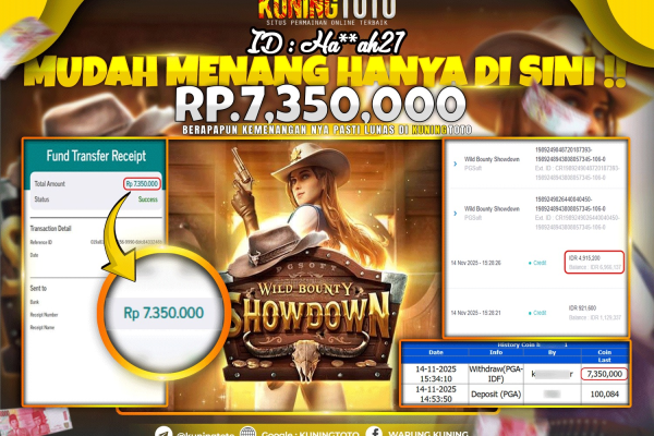 Bukti JackPot Slot Member KUNINGTOTO 14 November 2025 Slot Wild Bounty Showdown Memenangkan Jackpot Permainan Slot online sangat populer di…