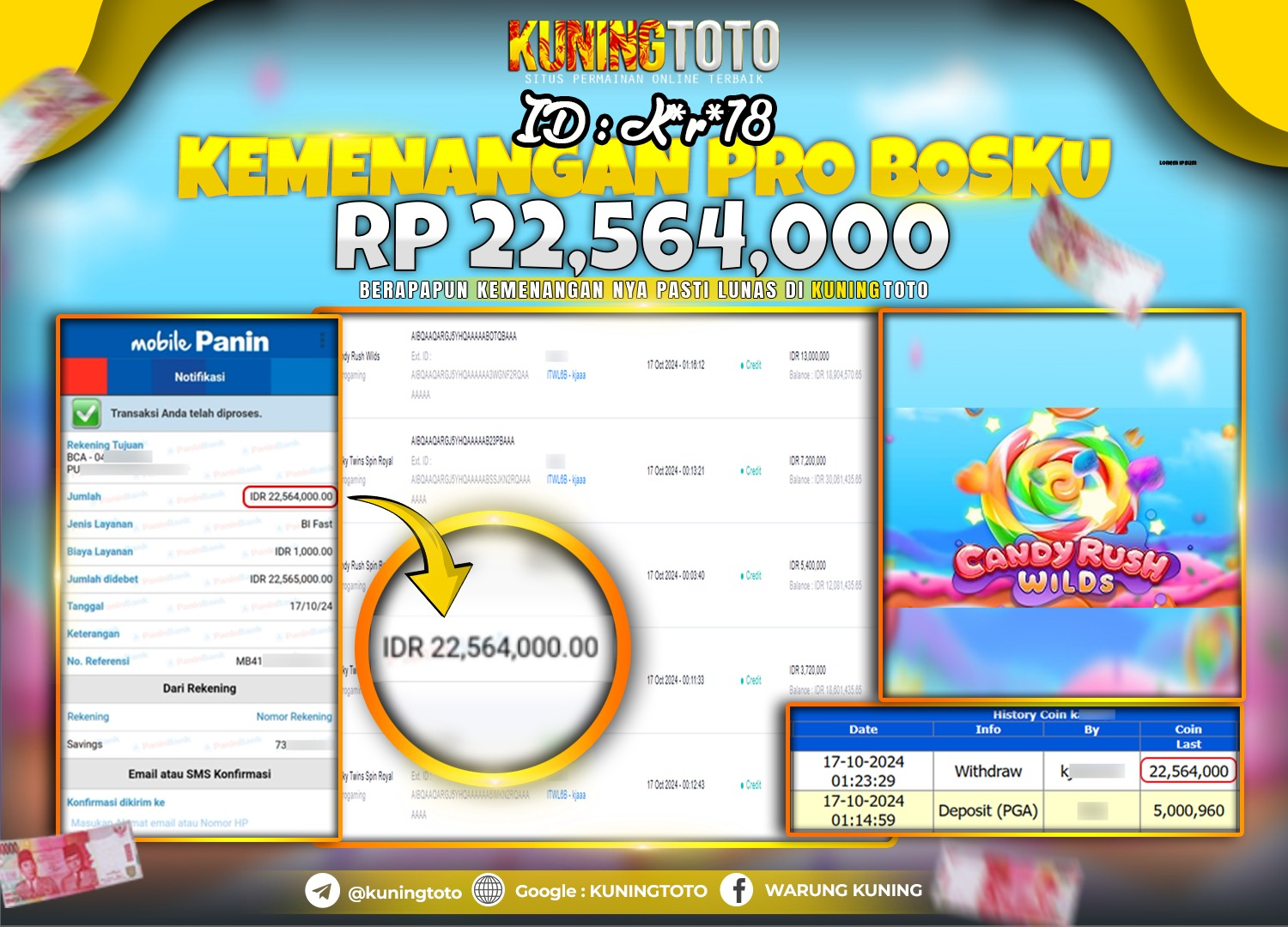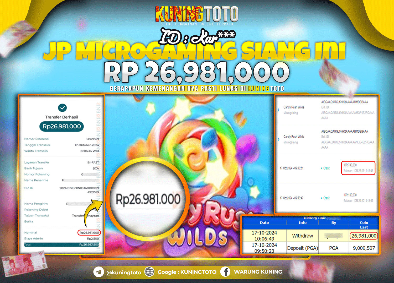 Bukti JackPot Slot Member KUNINGTOTO 17 Oktober 2024 Candy Rush Wild Memenangkan Jackpot Permainan Slot online sangat populer di kalangan…