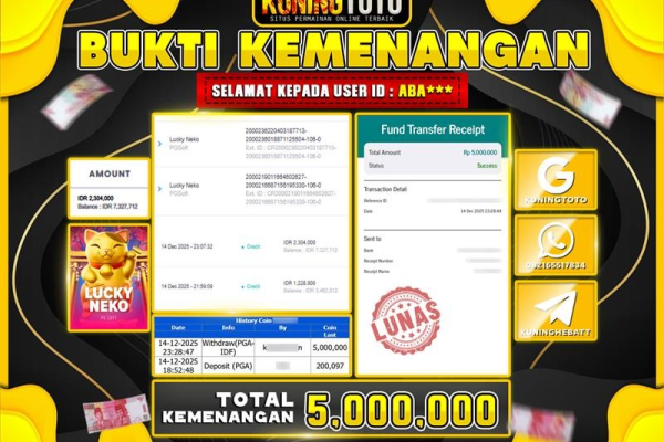 Bukti JackPot Slot Member KUNINGTOTO 14 Desember 2025 Slot Lucky Neko Memenangkan Jackpot Permainan Slot online sangat populer di kalangan…