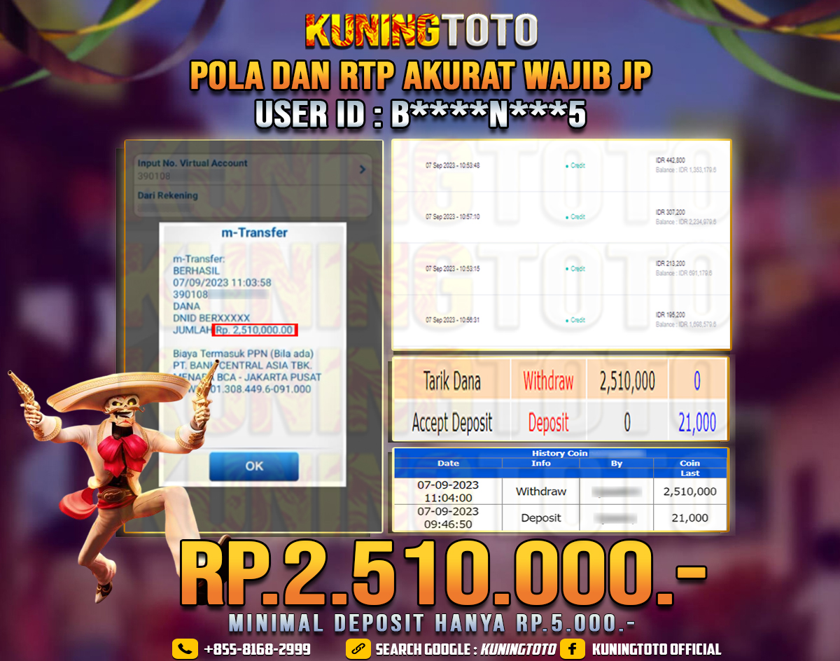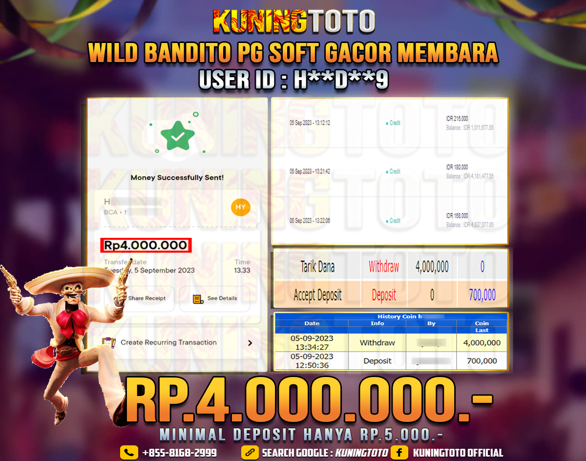 Bukti JP Slot Member KUNING TOTO 07 September 2023, Wild Bandito