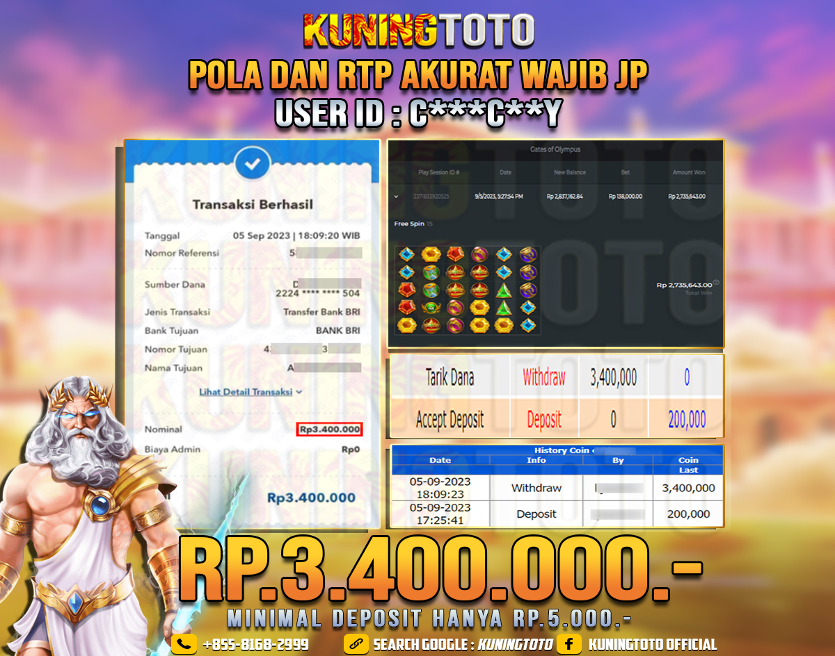Bukti JP SLOT Member KUNING TOTO 06 September 2023 Memenangkan Jackpot Permainan Slot online sangat populer di kalangan pemain judi…