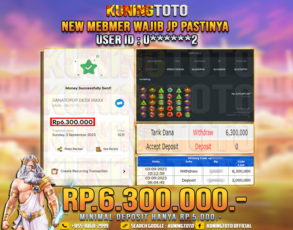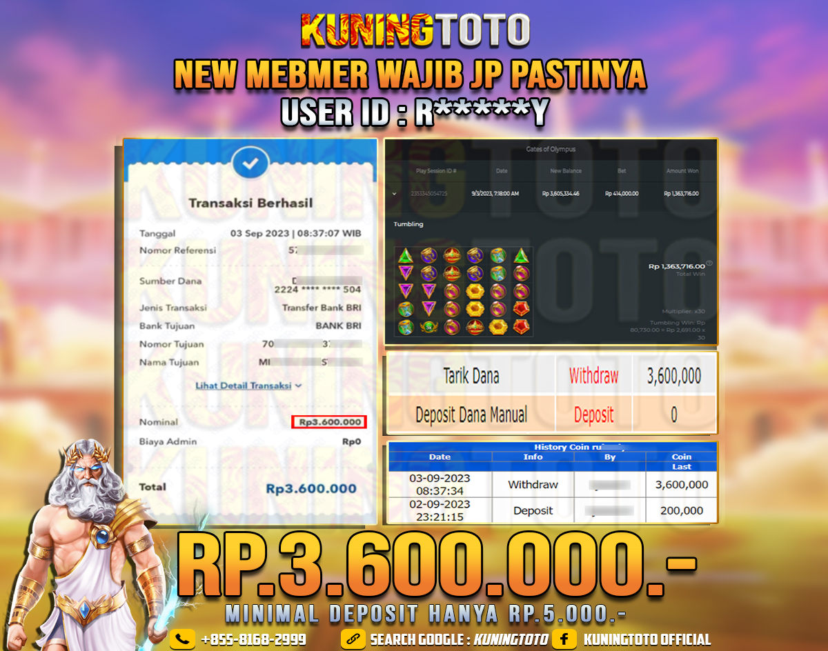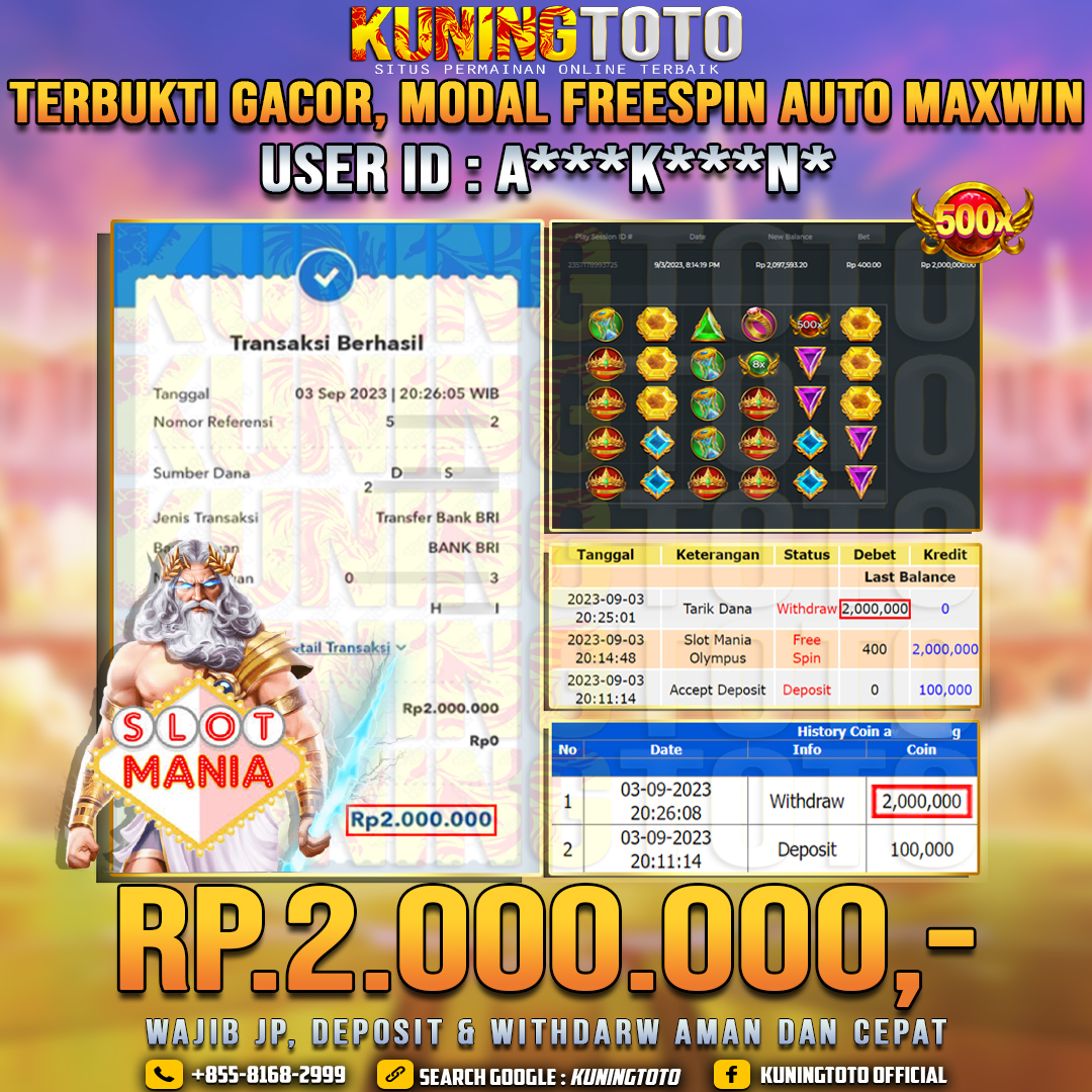 Bukti JP Slot Member KUNING TOTO 03 September 2023, GAME BARU GACOR AUTO MAXWIN