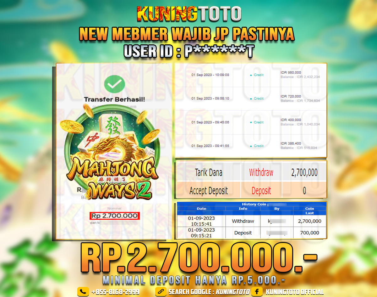 Bukti JP SLOT Member KUNING TOTO 01 September 2023 Memenangkan Jackpot Permainan Slot online sangat populer di kalangan pemain judi…
