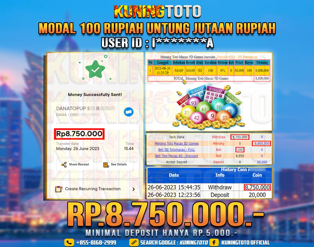 Bukti JP Togel member KUNING TOTO 26 JUNI 2023 5D Jackpot